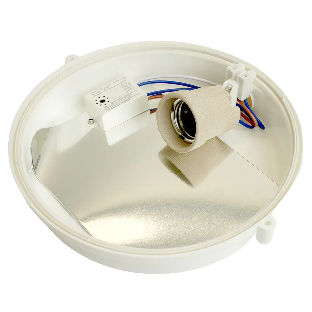 Накладные светильники Feron НБП 06-60-101 и НБП 06-60- 102 с фото-шумовым датчиком предназначены для общего освещения подсобных, промышленных, производственных помещений, а также применяются в сфере ЖКХ (подъезд, крыльцо, подвал и т.д.). При возникновении шума громкостью 30дБ и выше фото-шумовой датчик производит считывание уровня освещенности в помещении, и в случае, если освещенность ниже порогового значения 4лк, датчик замыкает цепь питания и лампа в светильнике включается. В качестве источника света могут использоваться лампы А60 с цоколем Е27 (в комплектацию не входят).