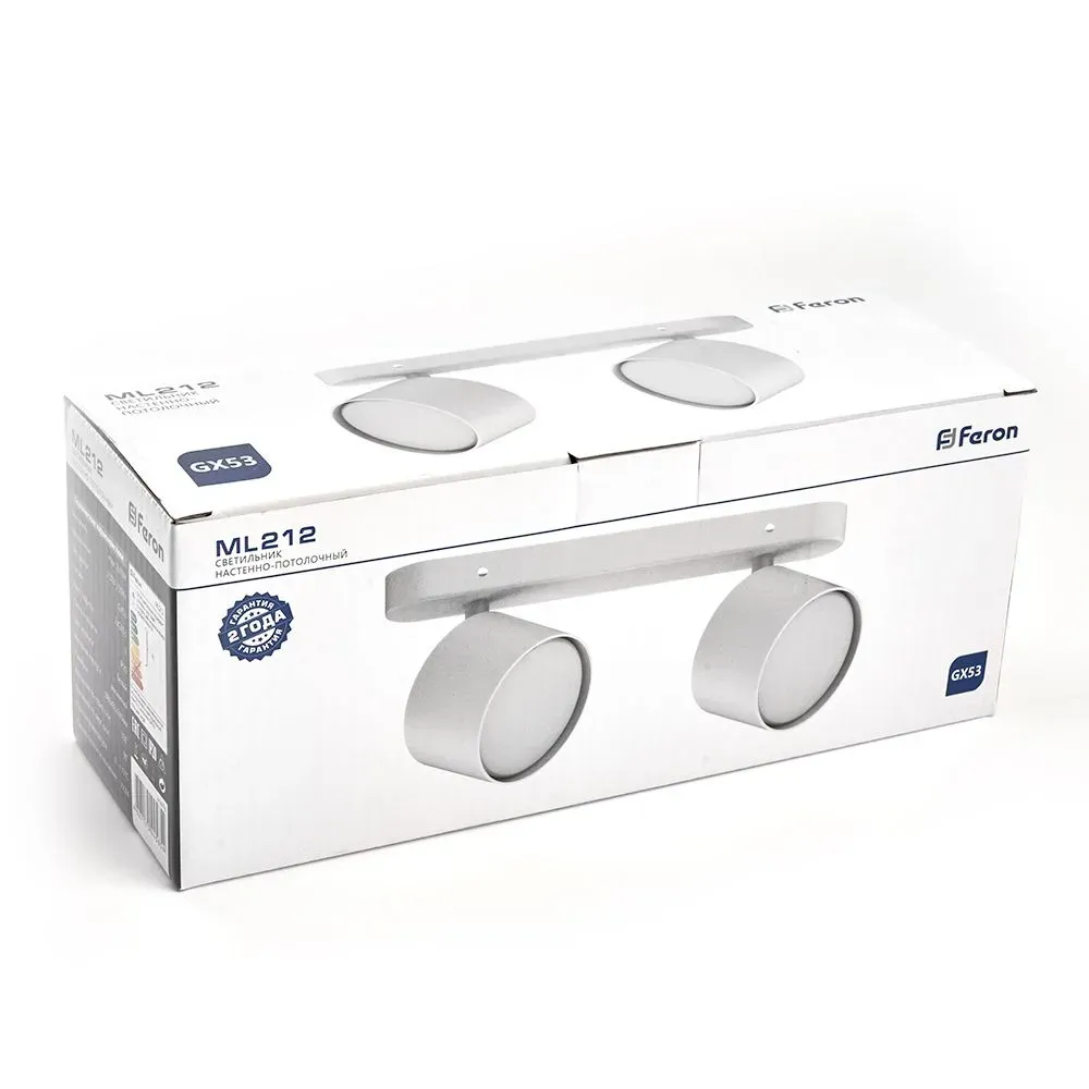 Светильник ДБО 2хGX53 без ламп наклонный белый FERON 41476