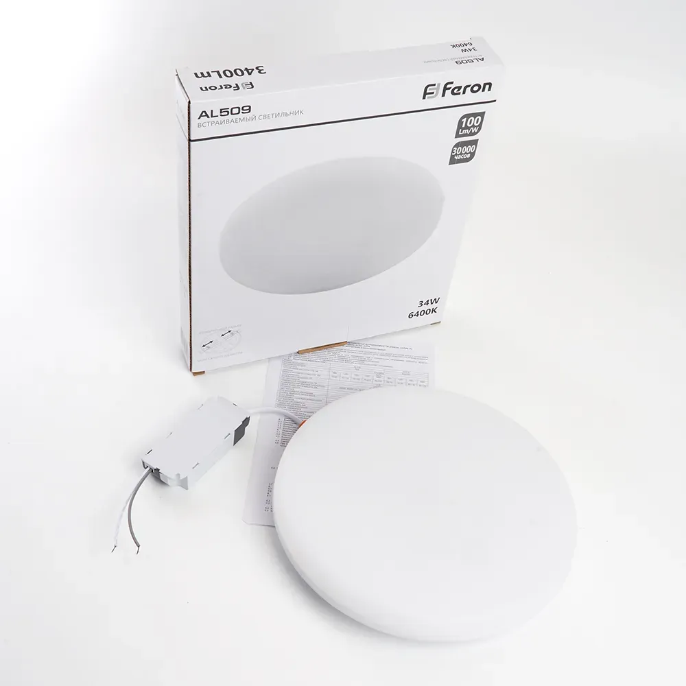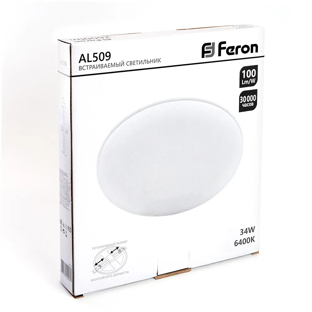 Отзывы о Светильник светодиодный ДВО-34w 6400К 3400Лм slim белый с регулируемым монтажным диаметром (до 210мм) FERON 41568 )
