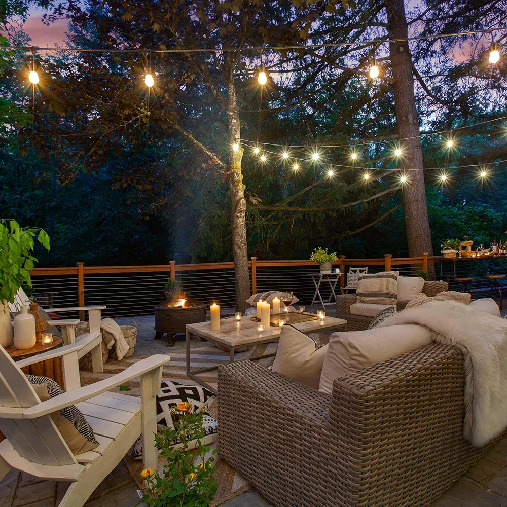 «Евро белт-лайт» с подвесами. Хорошо зарекомендовавшие себя в рекламе и уличном освещении белт-лайты дополнены подвесами для каждого патрона и выполнены из более легкого и изящного провода. Они добавят романтики в украшении сада, веранды или любой другой площадки на открытом воздухе.