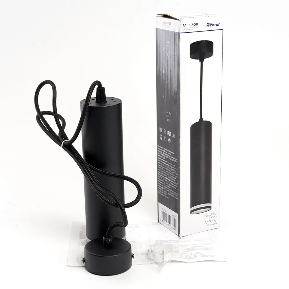 Отзывы о Светильник ДСО GU10 без лампы на подвесе черный FERON 48082 )