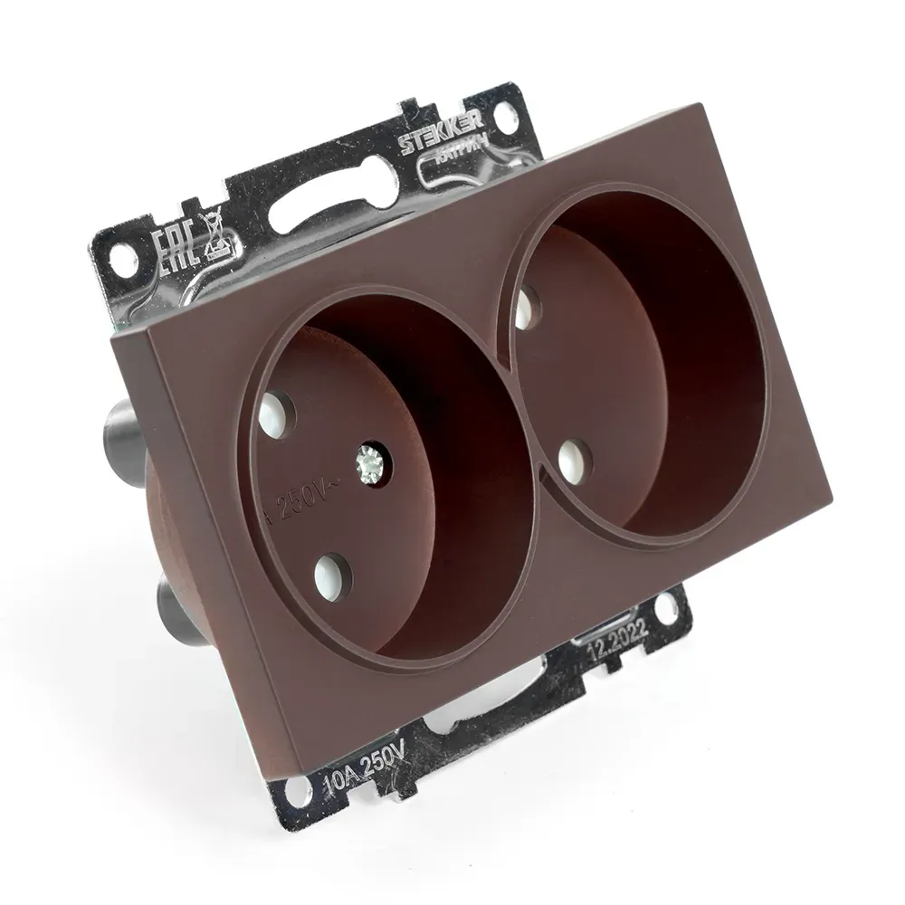 Отзывы о Розетка двухместная с защитной шторкой (механизм) б/з, 250В, 10А, серия Катрин, шоколад Stekker FERON 49026 )