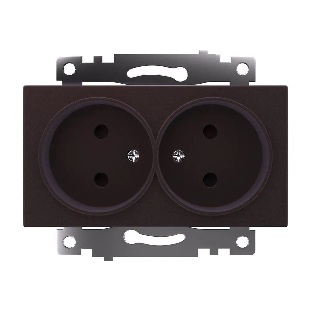 Розетка двухместная с защитной шторкой (механизм) б/з, 250В, 10А, серия Катрин, шоколад Stekker FERON 49026