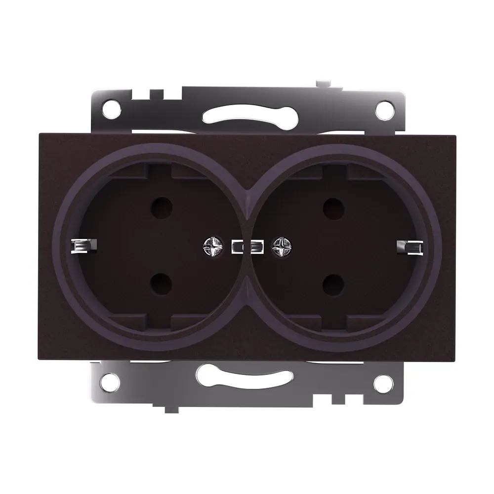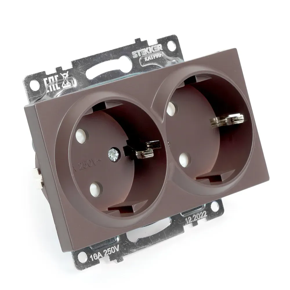 Розетка двухместная с защитной шторкой (механизм) с/з, 250В, 16А, серия Катрин, шоколад Stekker FERON 49030
