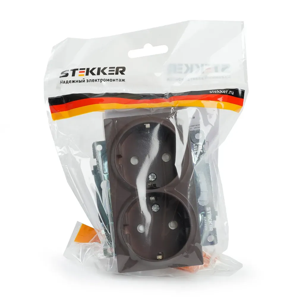 Розетка STEKKER GLS16-7114-04 на 2 гнезда, с заземлением. Материал: поликарбонат, латунь, цвет шоколад, размер 90*50*45мм. Номинальное напряжение 250, номинальный ток 16А, диапазон рабочих температур 0..+35C, IP20. Серия Катрин \'\'ТМ Stekker\'\' лаконичное и стильное решение для любого интерьера. Широкая цветовая гамма механизмов и стеклянных рамок позволяет реализовывать стильные решения и создавать уникальные акценты. Комбинации рамок и механизмов можно подобрать таким образом, чтобы создать уникальный ансамбль с освещением.