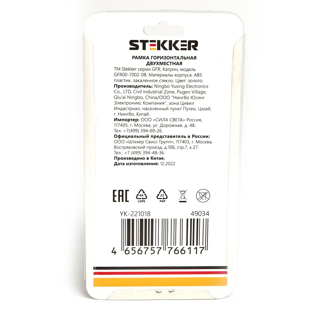 Рамка STEKKER GFR00-7002-08 на 2 поста. Материал: Стекло/ABS пластик, цвет золото, размер 155*84*9мм. Толщина стекла рамок составляет 3 мм, что придает рамке легкость и элегантность. Все пластиковые подложки выполнены в цвет стекла. Серия Катрин \'\'ТМ Stekker\'\' лаконичное и стильное решение для любого интерьера. Широкая цветовая гамма механизмов и стеклянных рамок позволяет реализовывать стильные решения и создавать уникальные акценты. Комбинации рамок и механизмов можно подобрать таким образом, чтобы создать уникальный ансамбль с освещением.