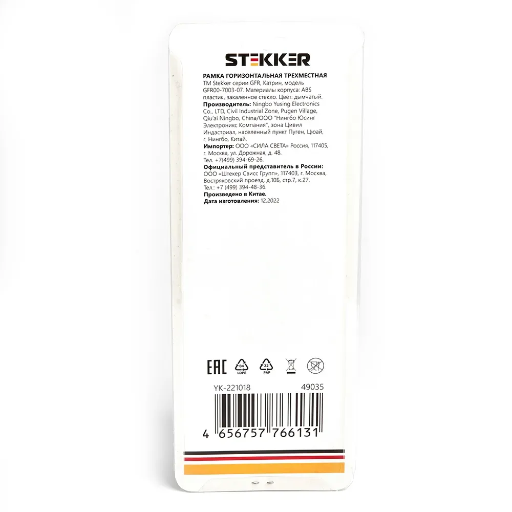 Рамка STEKKER GFR00-7003-07 на 3 поста. Материал: Стекло/ABS пластик, цвет дымчатый, размер 227*84*9мм. Толщина стекла рамок составляет 3 мм, что придает рамке легкость и элегантность. Все пластиковые подложки выполнены в цвет стекла. Серия Катрин \'\'ТМ Stekker\'\' лаконичное и стильное решение для любого интерьера. Широкая цветовая гамма механизмов и стеклянных рамок позволяет реализовывать стильные решения и создавать уникальные акценты. Комбинации рамок и механизмов можно подобрать таким образом, чтобы создать уникальный ансамбль с освещением.