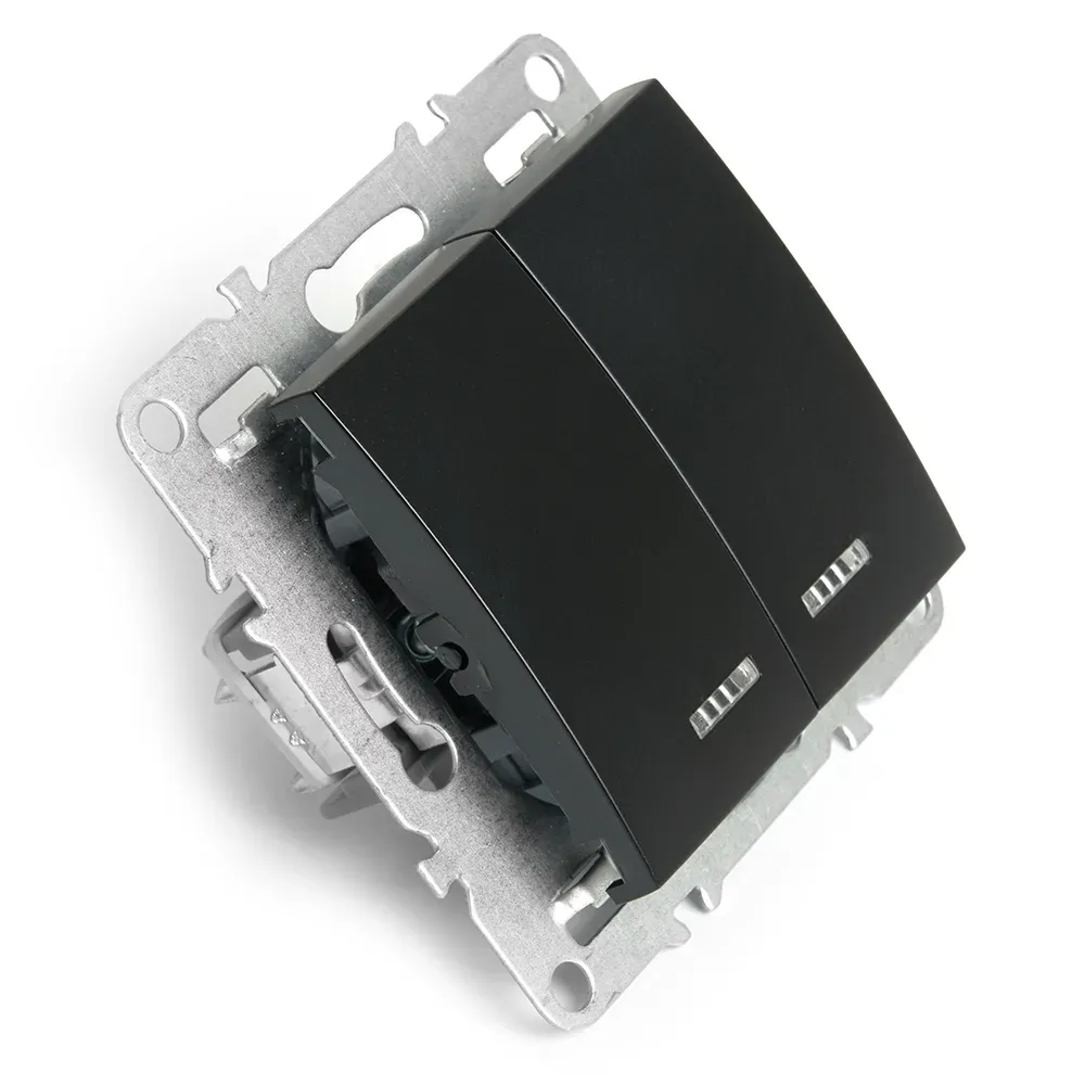 Выключатель двухклавишный c индикатором (механизм) серия Эрна черный STEKKER FERON 49147