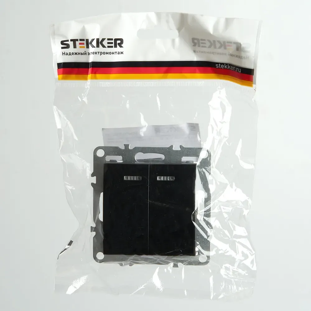 Отзывы о Выключатель двухклавишный c индикатором (механизм) серия Эрна черный STEKKER FERON 49147 )