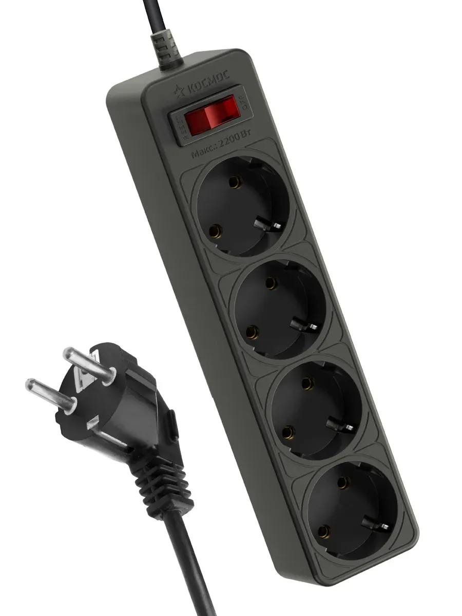 Сетевой фильтр КОСМОС 1,5м, 4 гнезда, пвс 3x0,75мм2, черный FKsm1.5m-4g(B) защищает устройства от выхода из строя из-за некачественного тока - защита от перегрузок и замыканий многоразовой автоматикой, защита от импульсных помех, часто встречающихся в бытовой электросети. Отлично подходит для подключения чувствительной электроники - компьютеров, телевизоров, стереосистем и др. Максимальная мощность - 2200Вт, что достаточно для одновременного подключения 2 ноутбуков, телевизора, игровой приставки, и любого мощного устройства. Возможность крепления на стену. 100% медный 3-х жильный кабель с сечением 0,75мм, пожаробезопасный корпус.