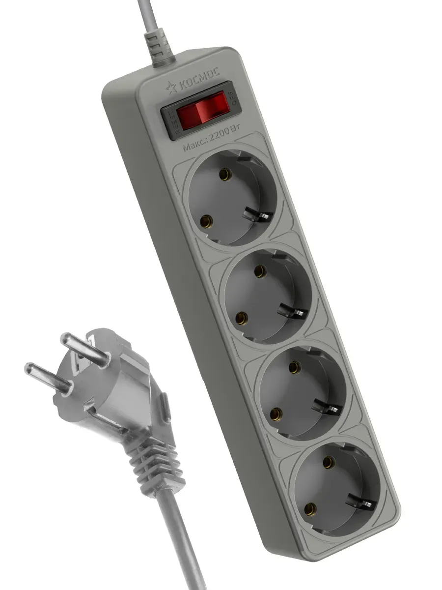 Сетевой фильтр КОСМОС 1,5м, 4 гнезда, пвс 3x0,75мм2, серый FKsm1.5m-4g(G) защищает устройства от выхода из строя из-за некачественного тока - защита от перегрузок и замыканий многоразовой автоматикой, защита от импульсных помех, часто встречающихся в бытовой электросети. Отлично подходит для подключения чувствительной электроники - компьютеров, телевизоров, стереосистем и др. Максимальная мощность - 2200Вт, что достаточно для одновременного подключения 2 ноутбуков, телевизора, игровой приставки, и любого мощного устройства. Возможность крепления на стену. 100% медный 3-х жильный кабель с сечением 0,75мм, пожаробезопасный корпус.