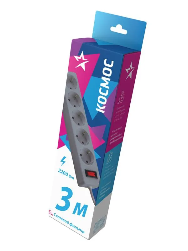 Отзывы о Сетевой фильтр ПВС КОСМОС 3х0.75 серый 3м с выключателем КОСМОС FKsm3m-5g(G) )