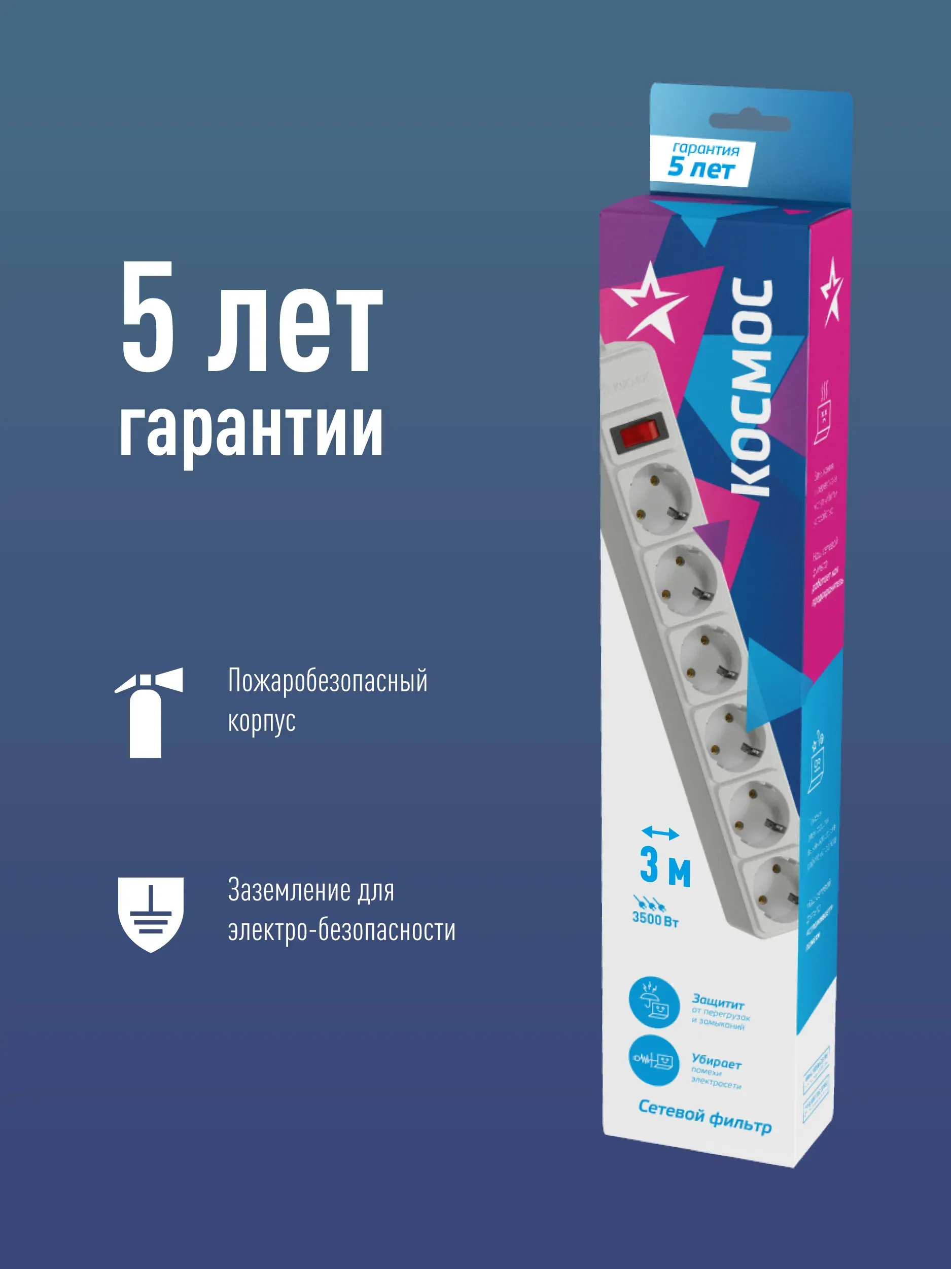 Отзывы о Сетевой фильтр 3м 6 гнезд, пвс 3х1мм2, белый, с заземлением, индикатор сети, КОСМОС КОСМОС FKsm3m-6g(W)16A )