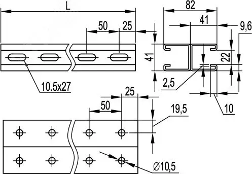 DKC / ДКС BPD4105HDZ Двойной С-образный профиль 41х41, L500 толщина 2.5мм, горячеоцинкованный