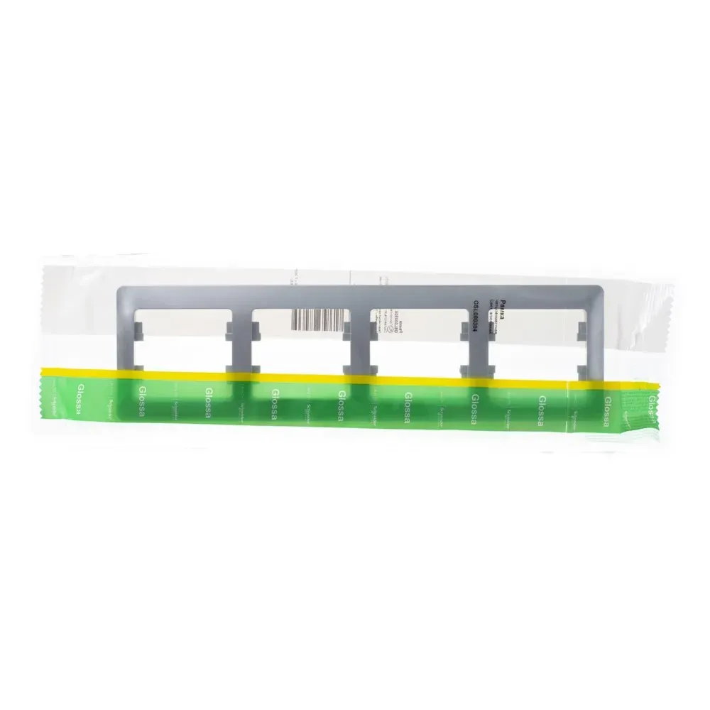 Рамка Systeme Electric (ранее Schneider Electric) серии Glossa (цвет алюминий) четырёхместная. Устанавливается в вертикальном положении. Выполнена из материала PС+ASA, стойкого к УФ-излучению и появлению царапин. Позволяет гармонично вписать электроустановочное изделие в интерьер помещения.