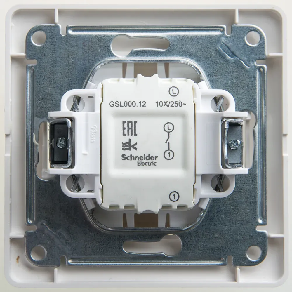 Выключатель Systeme Electric (ранее Schneider Electric) серии Glossa (в сборе, цвет перламутр) одноклавишный подходит для сетей 250 В, на ток 10 А. Выполнен из материала PС+ASA, стойкого к УФ-излучению и появлению царапин. Эргономичные клеммы расположены в два ряда - сверху и снизу.