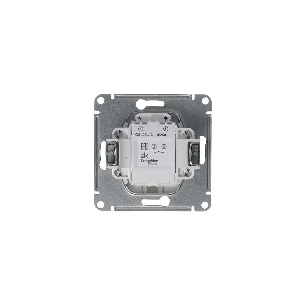 Механизм Systeme Electric (ранее Schneider Electric) серии Glossa (цвет платина) выключателя 1-клавишного с подсветкой подходит для сетей 250 В, на ток 10 А. Благодаря современной светодиодной подсветке зеленого цвета изделие легко найти в темноте. Выполнен из материала PС+ASA, стойкого к УФ-излучению и появлению царапин. Эргономичные клеммы расположены в два ряда - сверху и снизу.
