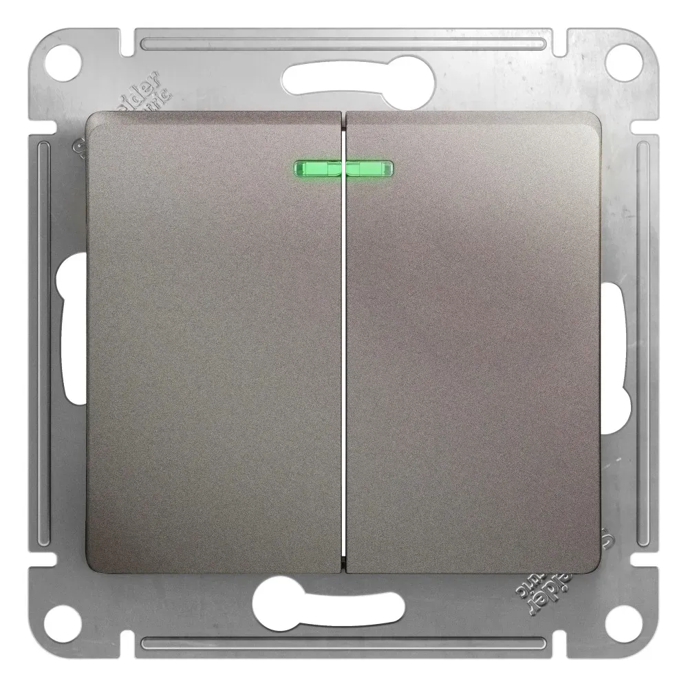 GLOSSA Выключатель двухклавишный с подсветкой схема 5а платина SE (Потенциал) GSL001253