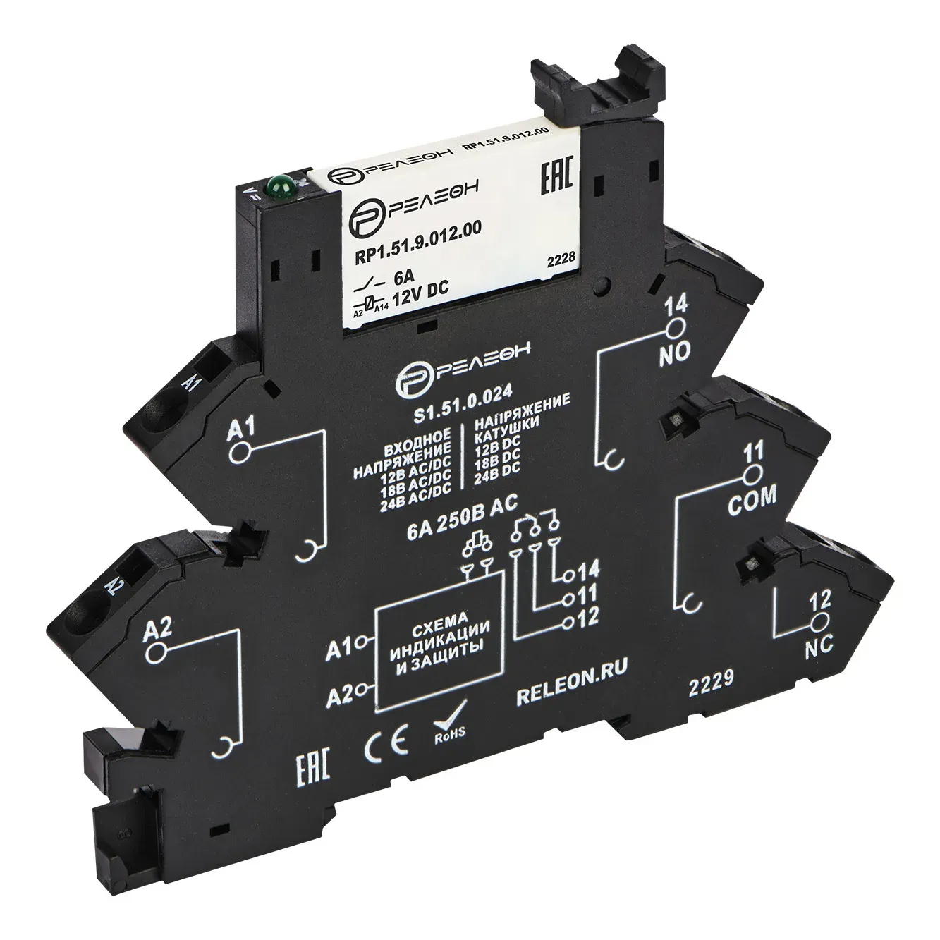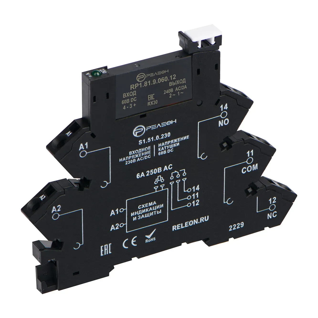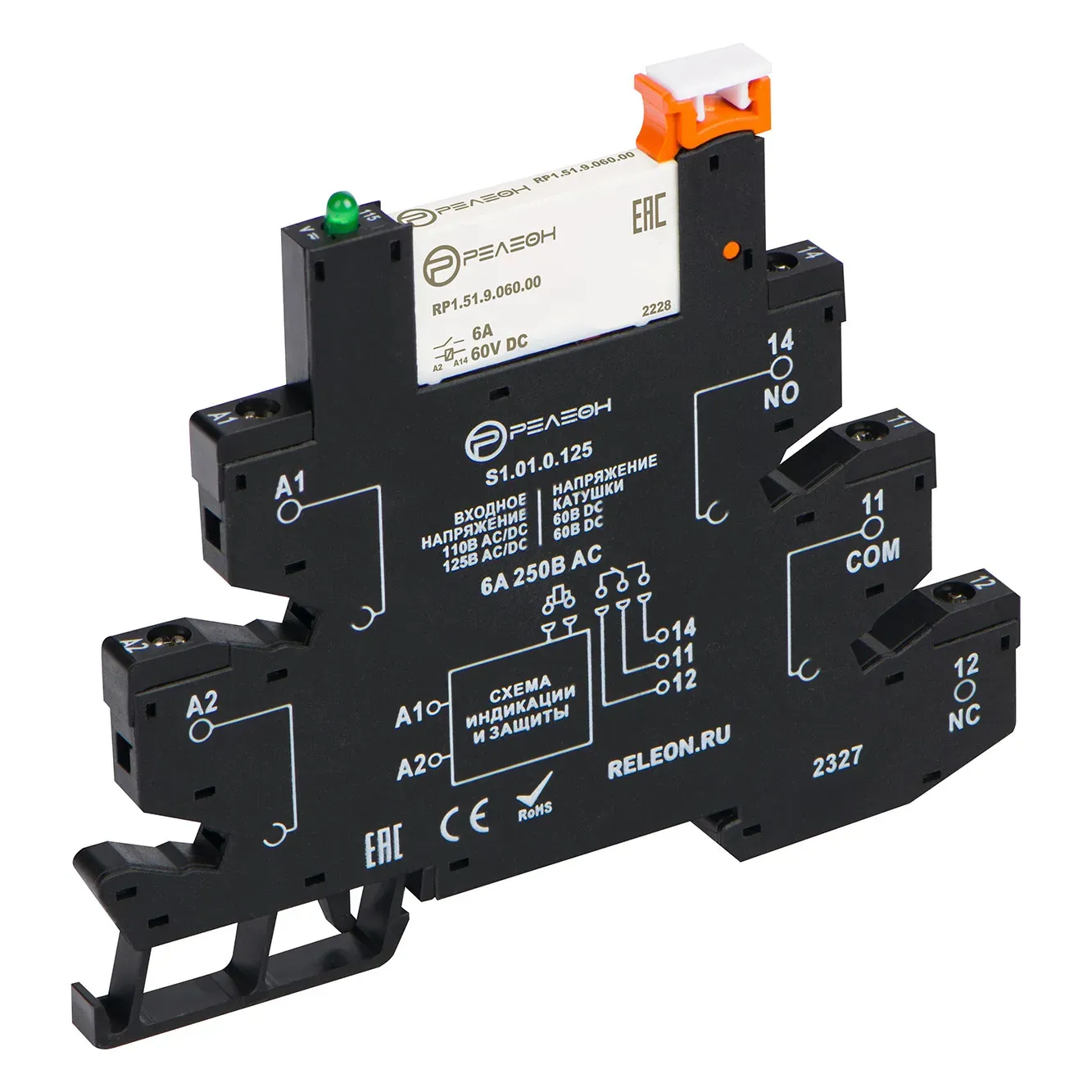 Интерфейсный модуль реле, 1 перекидной контакт 6А 110-125В AC/DC, винтовые зажимы Релеон RM151012500