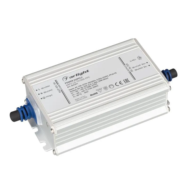 Блок питания ARPJ-LG-561700-PFC (50W, 25-56V, 0.6-1.7A) (Arlight, IP67 Металл, 5 лет) Arlight 046270