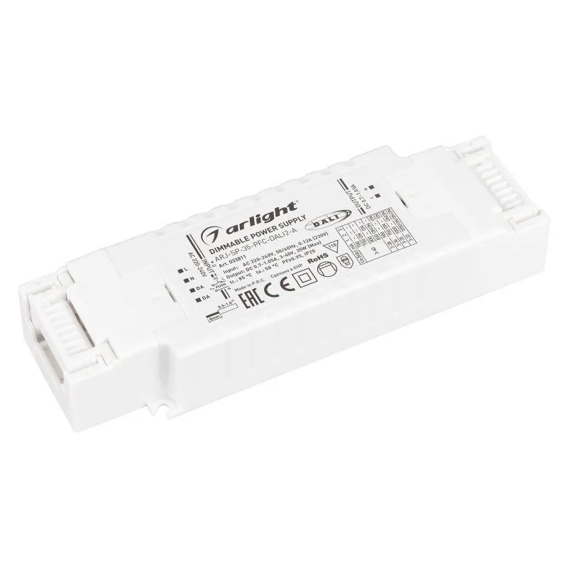Блок питания ARJ-SP-40-PFC-DALI2-INS (40W, 9-47V, 0.85-1.2A) (IP20 Пластик, 5 лет) Arlight 031613(1)
