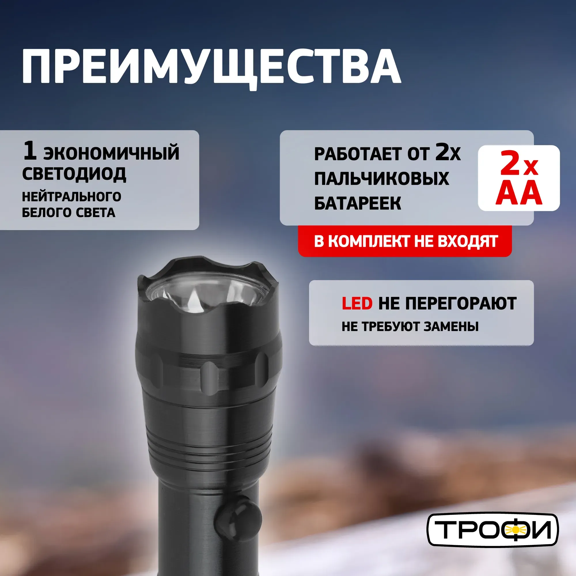 Отзывы о Фонарь TM1W Трофи 1x1W LED, алюм, 2хАА ЭРА Б0023319 )