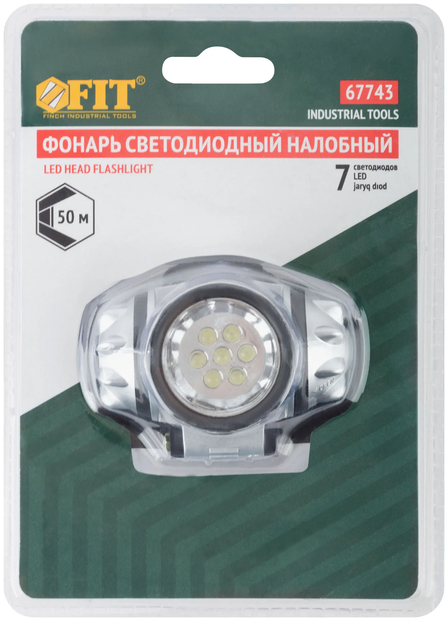 Фонарик с креплением на голову , ударопрочный с 7 светодиодами FIT 67743