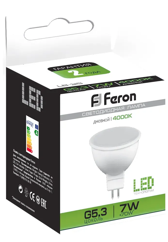 Отзывы о Лампа светодиодная LED 7вт 230в G5.3 белая FERON 25236 )