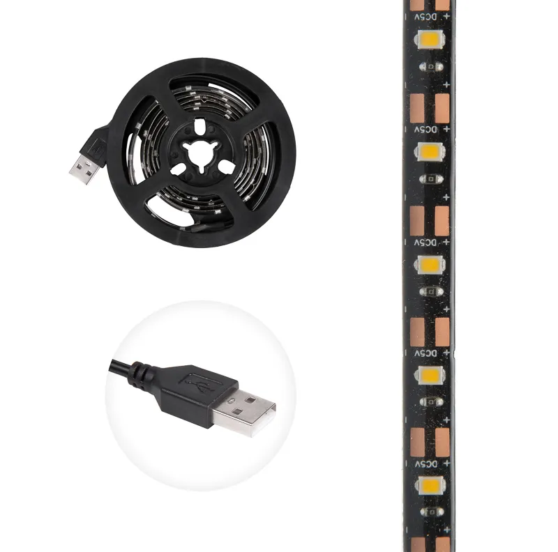LED лента с USB коннектором 5 В, 8 мм, IP65, SMD 2835, 60 LED/m, цвет свечения желтый REXANT 141-382