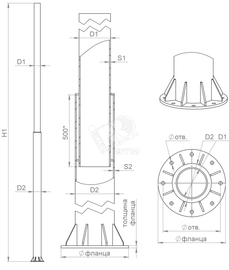 Опоры освещения в основном предназначены для установки искусственных источников света вдоль дорог, магистралей, площадей, на территории жилых комплексов, спортплощадок, автостоянок, парковых зон и многих других общественных мест, где свет необходим для безопасности или комфорта. Граненые опоры - имеют 6-8 граней, изготавливаются из листовой стали. Внутри столб полый, что позволяет беспрепятственно проводить кабель. На опоре имеется один сварной шов. К несиловым опорам кабель подводится под землей через специальное сквозное отверстие и выводится через ревизионный лючок, который по умолчанию имеется в нижней части опоры. Подключение автоматов производится через него.
