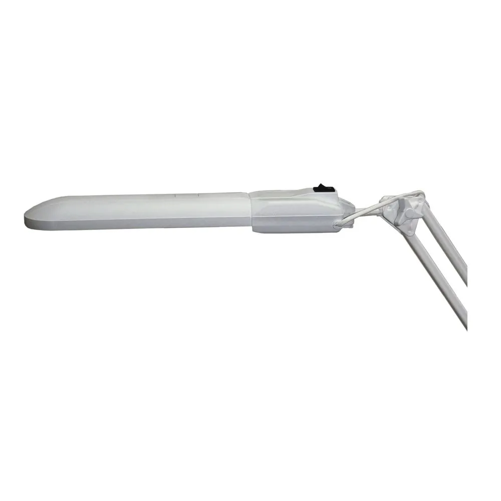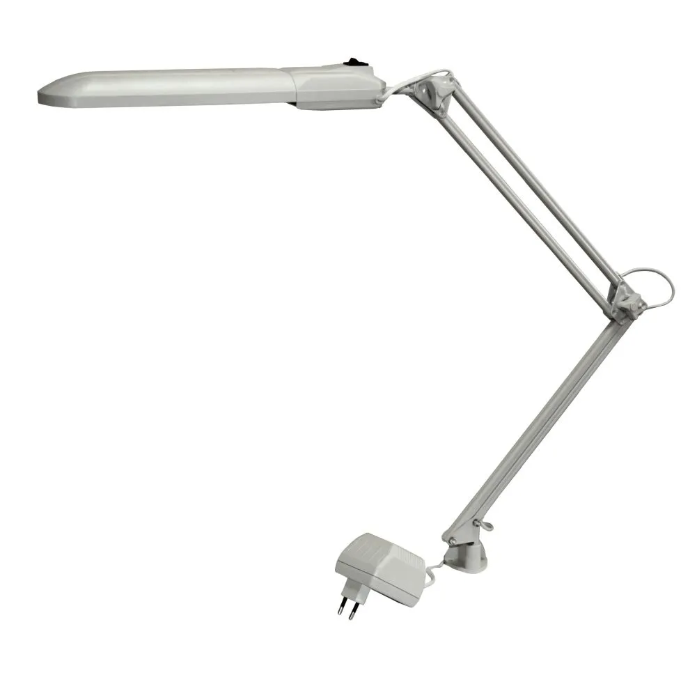Светильник с патроном G23 для использования с КЛЛ. Светильник с дросселем (адаптер в электрическую розетку) . Вытянутая голова светильника имеет множество степеней свободы. Светильник на двухзвенном пантографе, что очень удобно для расположения плафона в определённом положении на разных высотах. Варианты использования: в учебных, медицинских, жилых и офисных помещениях.