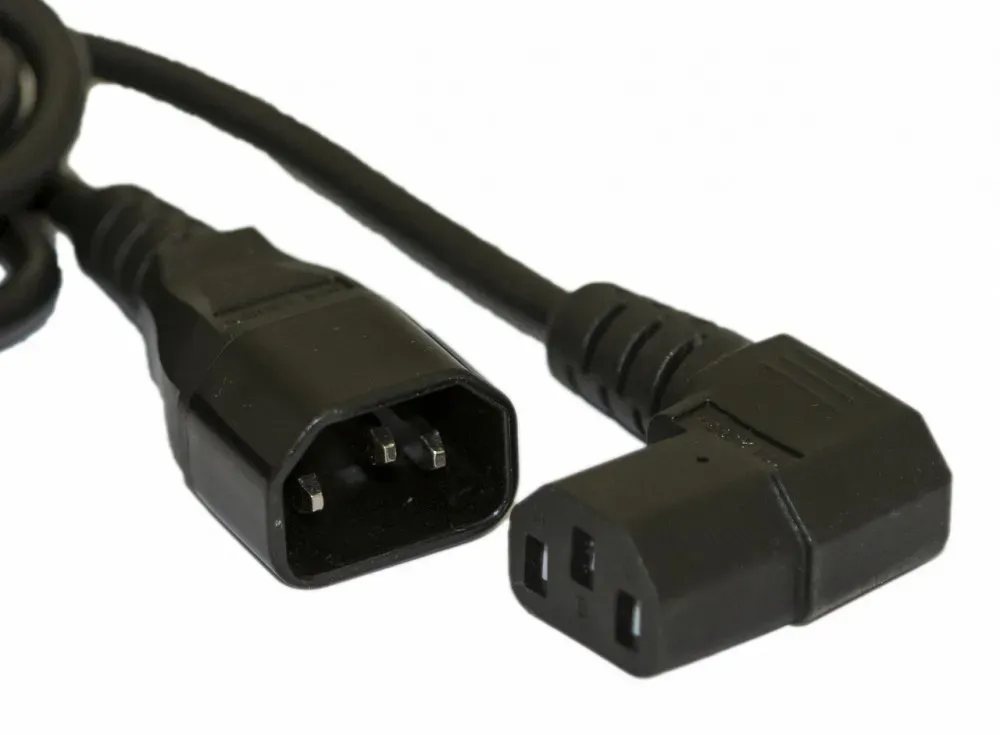 Hyperline PWC-IEC13A-IEC14-3.0-BK Кабель питания монитор-компьютер IEC 320 C13 угловая - IEC 320 C14 3x1.0, 10A, прямая вилка, 3м, цвет черный