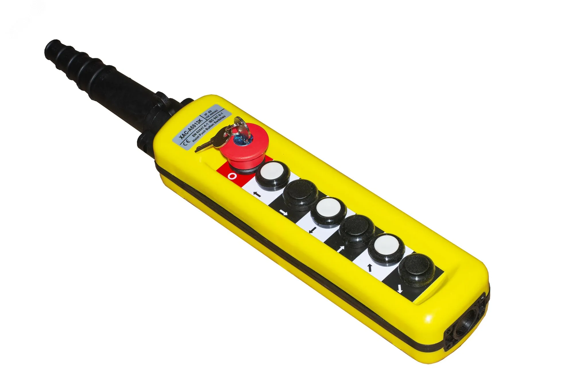 Пульт управления краном ХАС-А6813К (6 кнопок, 1 скорости, авар. стоп + ключ) Кранэлектро 00-00014594