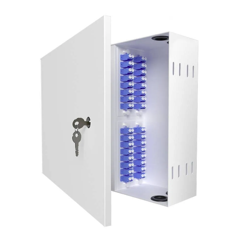 Кросс настенный, укомплектованный, 32 порта LC/UPC duplex, 9/125 мкм со сменными адаптерными планками предназначен для установки на любую плоскую поверхность и подключения волоконного оптического кабеля и оптических шнуров в волоконно-оптических линиях связи, а также их маркировки.