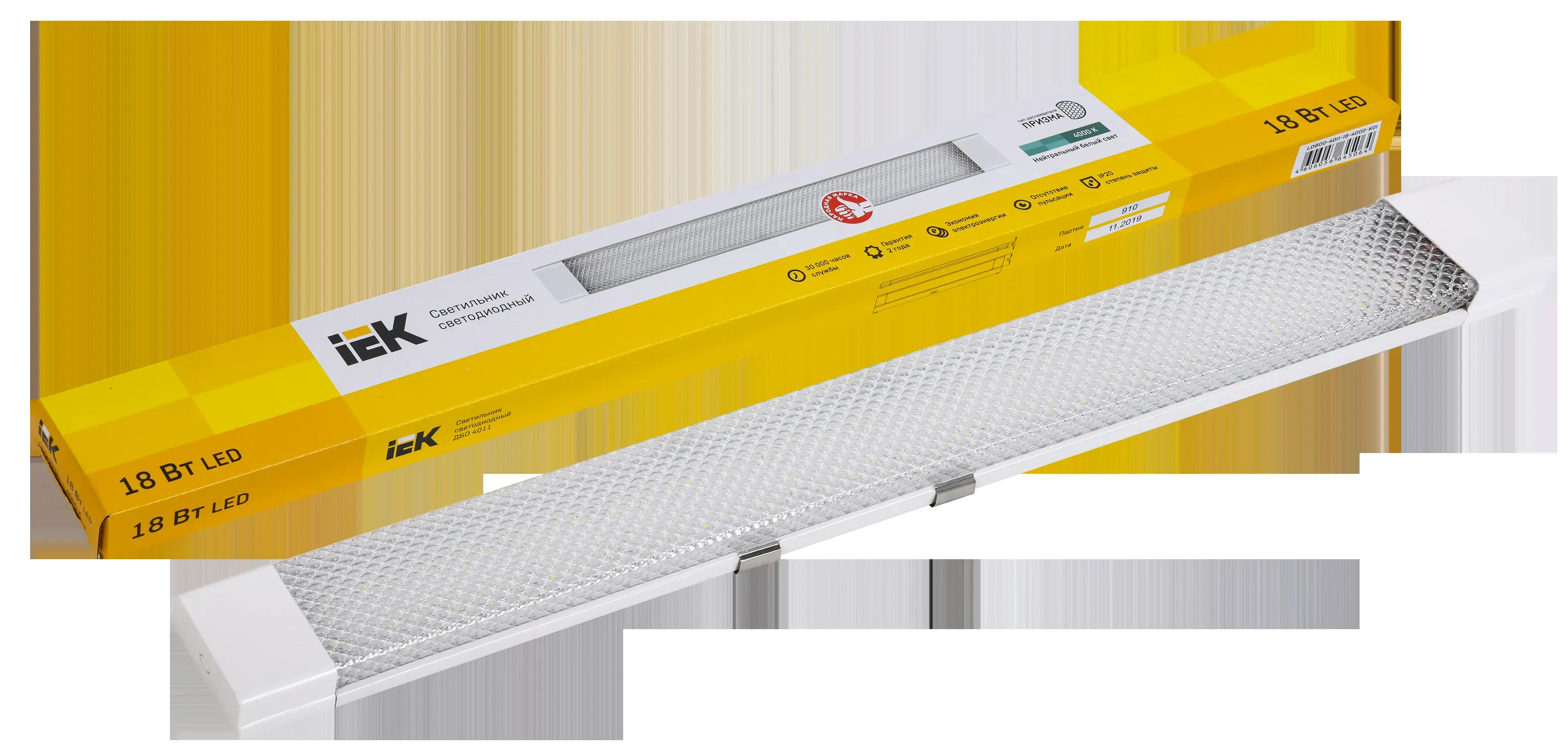 Светильник светодиодный ДБО 4011 18Вт 4000К IP20 600мм призма IEK IEK LDBO0-4011-18-4000-K01