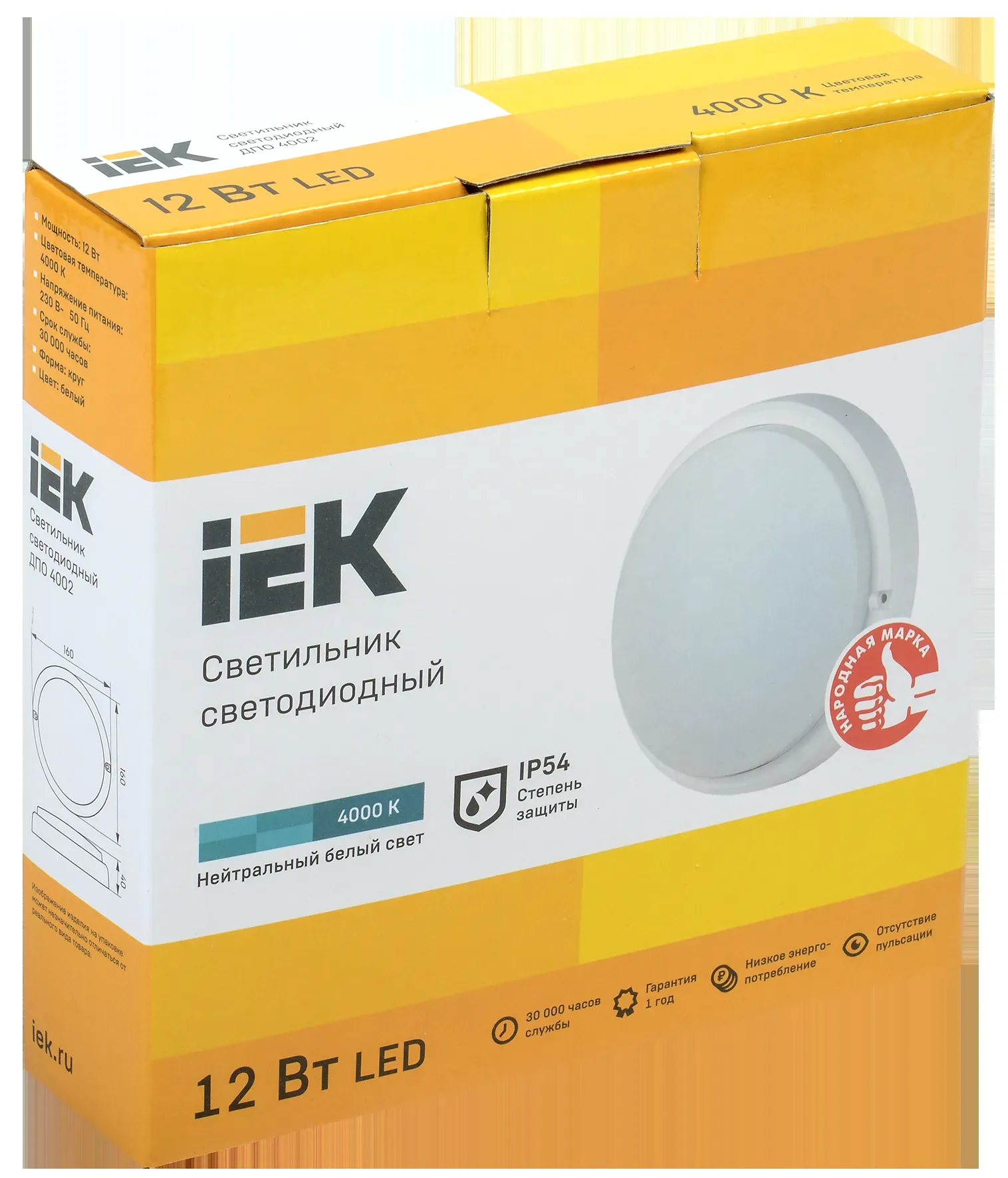 Светильник светодиодный ДПО 4002 12Вт IP54 4000K круг белый пластик IEK IEK LDPO0-4002-12-4000-K01