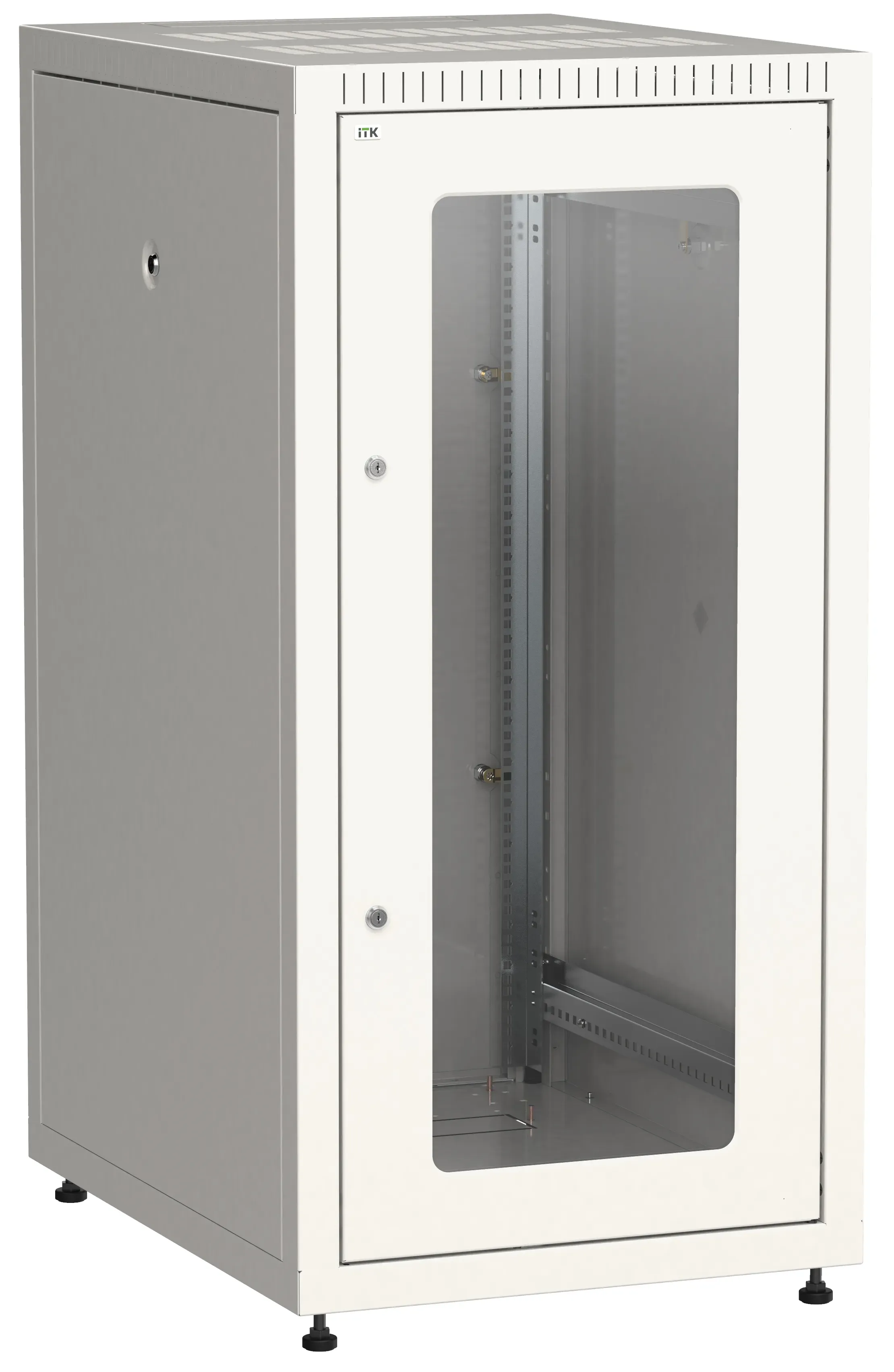 Напольные 19" шкафы серии LINEA E предназначены для размещения телекоммуникационного оборудования. Шкафы выполнены в системе несущих конструкций серии 482,6 мм по ГОСТ 28601.2-90. Шкафы разборной конструкции состоит из основания, крыши, вертикальных стоек, профилей и дверей. Доступ для монтажа оборудования возможен с четырех сторон через съемные боковые стенки, переднюю и заднюю двери. Двери легкосъемные с запиранием на точечные замки. Для обеспечения эффективного теплообмена и поддержания необходимого температурного режима, в крышу шкафа могут установлены ITK вентиляторные панели серии ПВ до 3х штук в шкаф (глубина 1000мм). Крыша и основание имеют перфорацию для установки ITK щеточных кабельных вводов. Вертикальные 19” монтажные профили регулируются по глубине с шагом 20 мм. Регулируемые опоры (ножки) позволяют компенсировать неровности пола. Комплект заземления шкафа позволяет соединить все части шкафа в единый контур заземления. Шкафы могут быть состыкованы между собой с помощью комплекта для соединения.