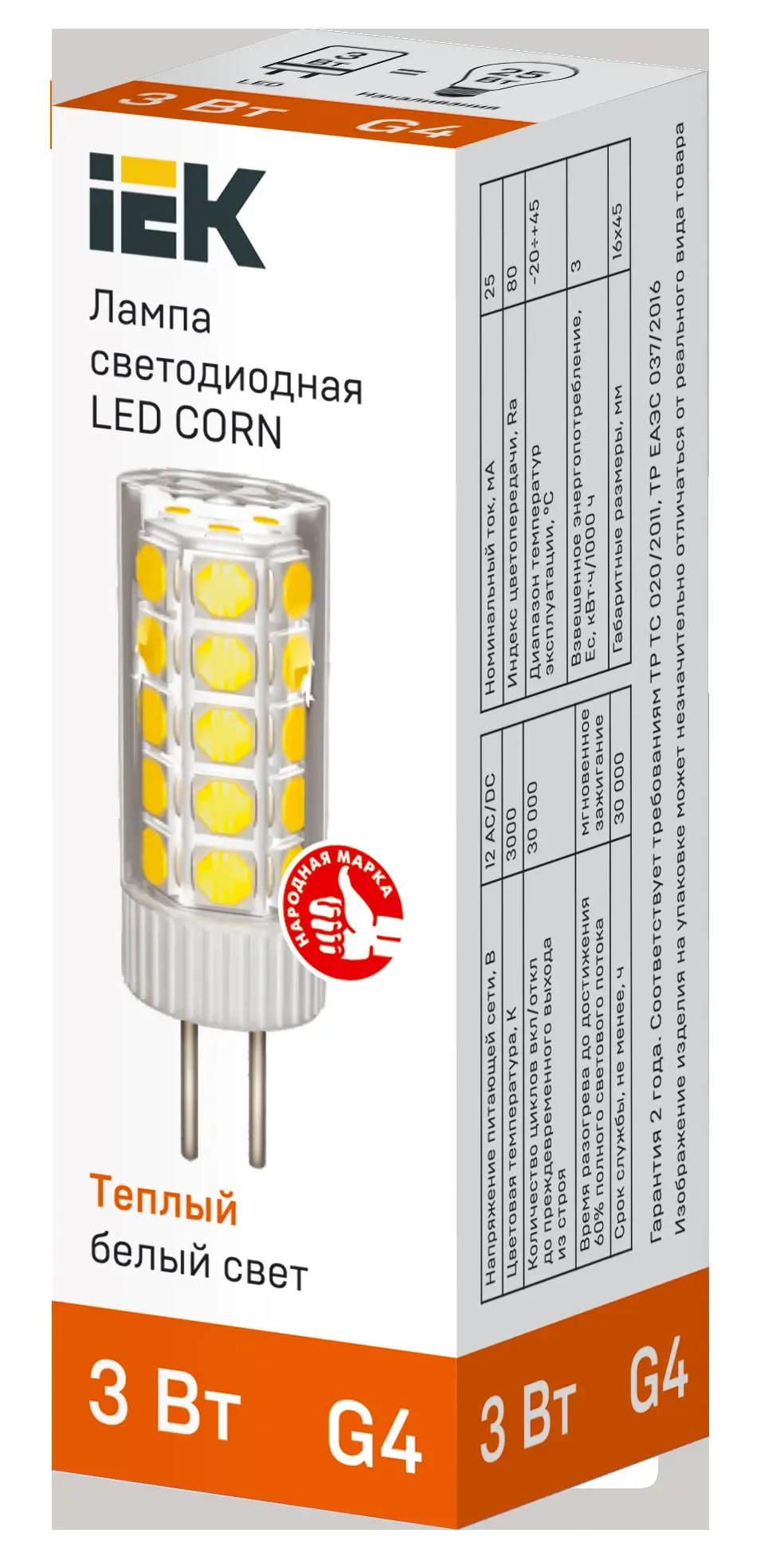 Отзывы о Лампа светодиодная CORN капсула 3Вт 12В 3000К керамика G4 IEK IEK LLE-CORN-3-012-30-G4 )