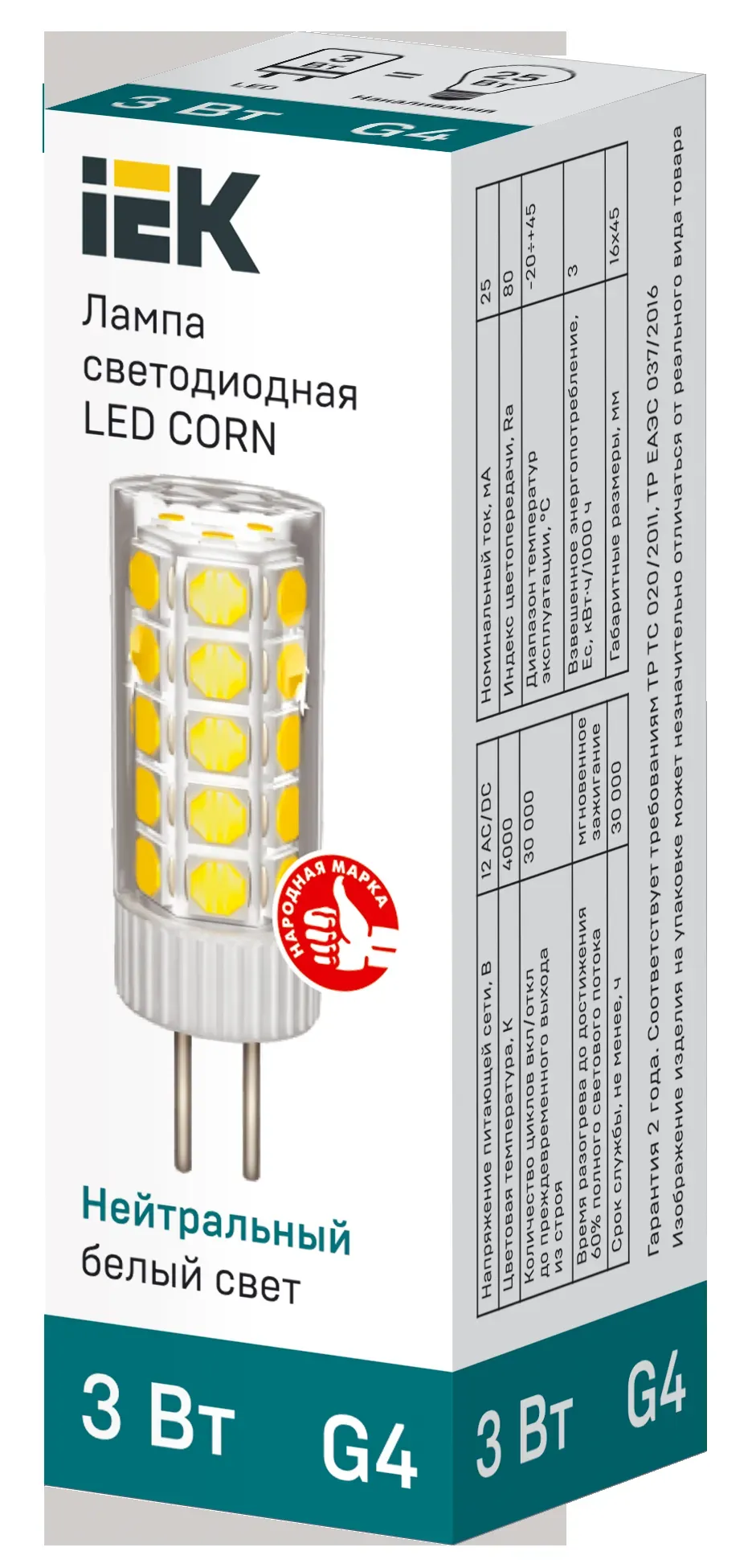 Отзывы о Лампа светодиодная CORN капсула 3Вт 12В 4000К керамика G4 IEK IEK LLE-CORN-3-012-40-G4 )