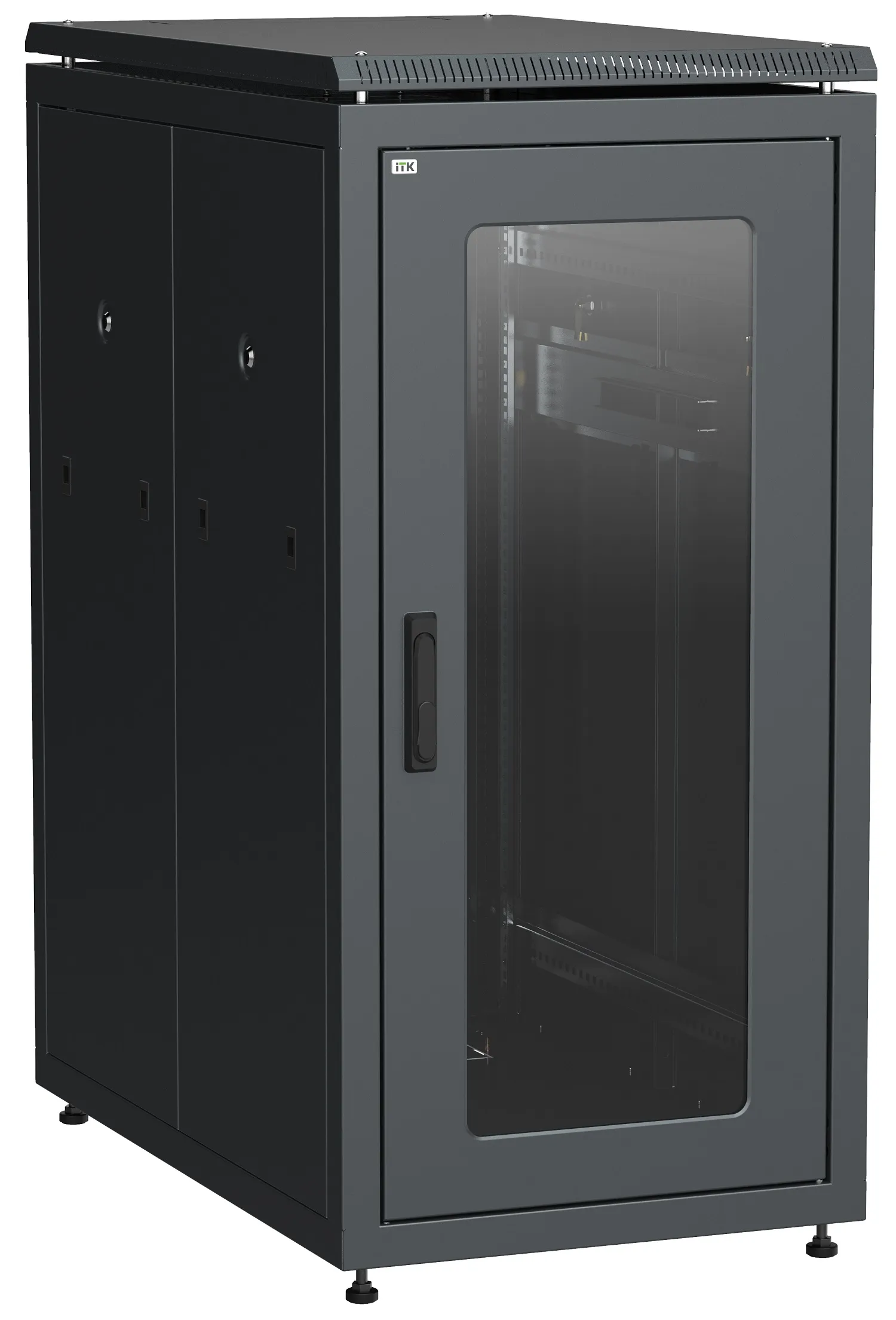 Отзывы о Шкаф напольный сетевой 19'' linea n 24u 800х1000мм стеклянная передняя дверь. задняя металлическая черный ITK LN05-24U81-GM )