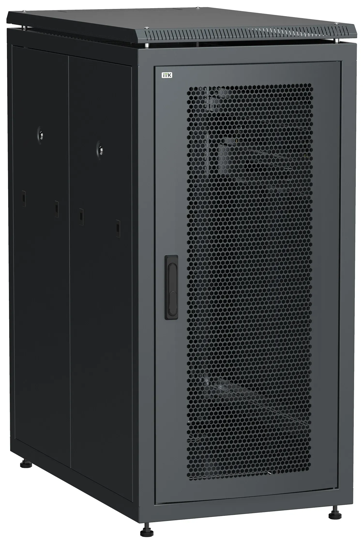 Шкаф напольный сетевой 19'' linea n 24u 800х1000мм перфорированная передняя дверь. задняя перфорированная черный ITK LN05-24U81-PP