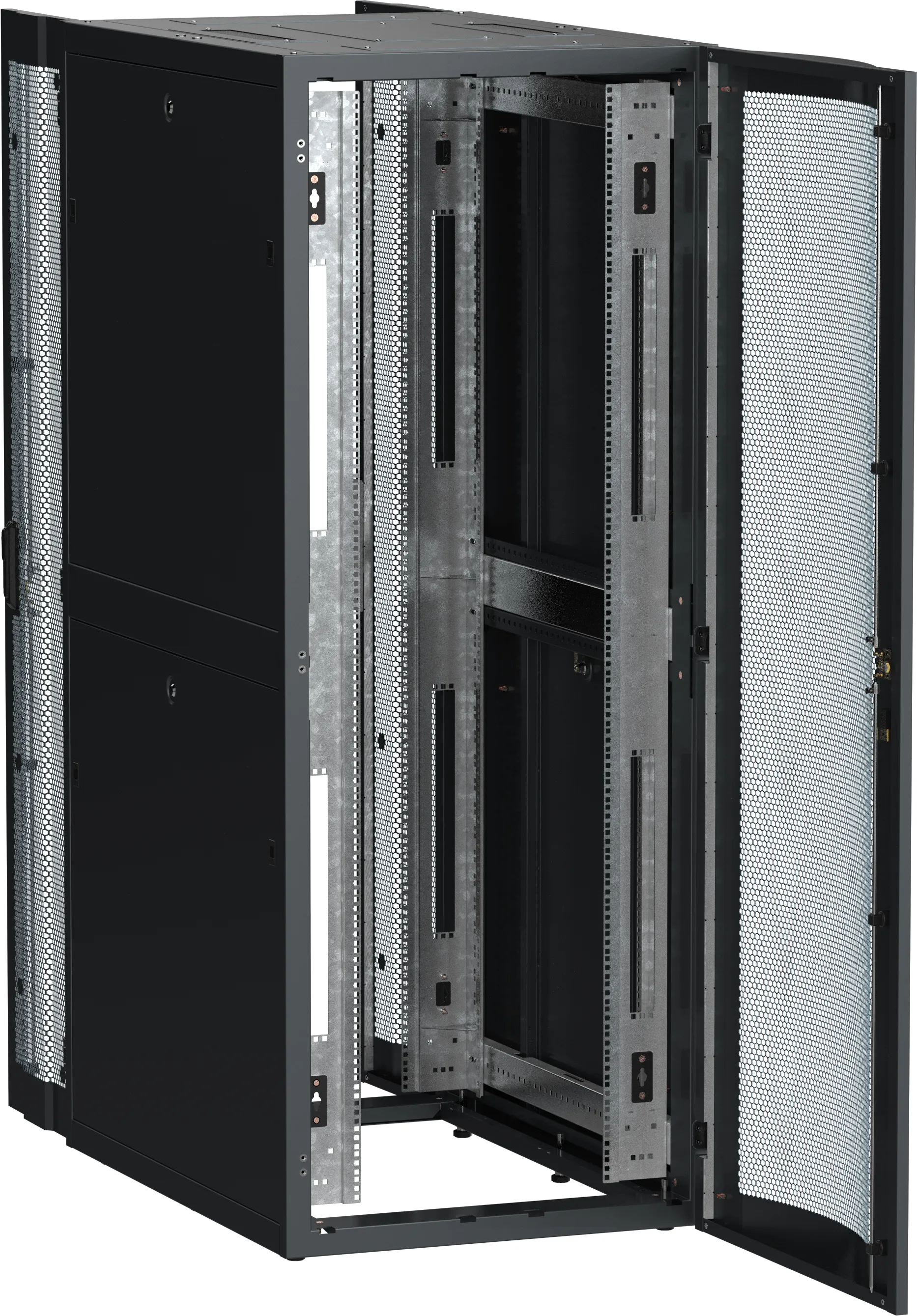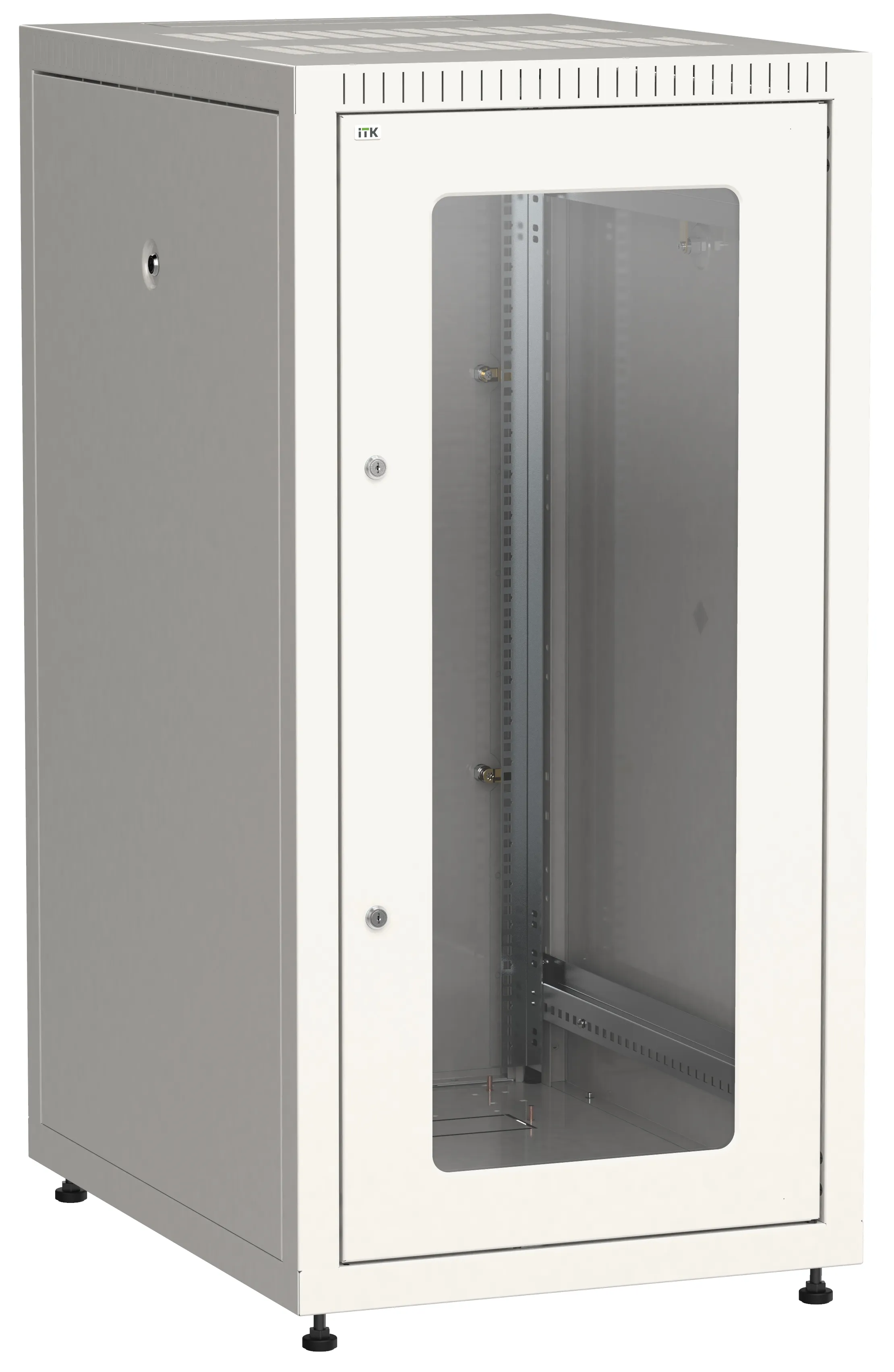 Серверные шкафы ITK серии LINEA S применяются для размещения тяжелого телекоммуникационного оборудования и серверов большой глубины в условиях ограниченного монтажного пространства. Поставляется собранным на паллете. Все токопроводящие элементы конструкции имеют заземление. За счет усиленной конструкции статическая нагрузочная способность шкафа составляет 1500 кг, а перфорированные двери с 83% перфорации гарантируют отличное естественное охлаждение. Доступ в шкаф возможен с четырех сторон. Для ввода кабелей предусмотрены кабельные вводы в крыше и основании. Боковые стенки съемные, имеют замки и защелки для фиксации. Вертикальные монтажные профили могут регулироваться по глубине. В крыше шкафа предусмотрено посадочное место для установки потолочных вентиляторных панелей для организации высокоэффективного принудительного охлаждения.