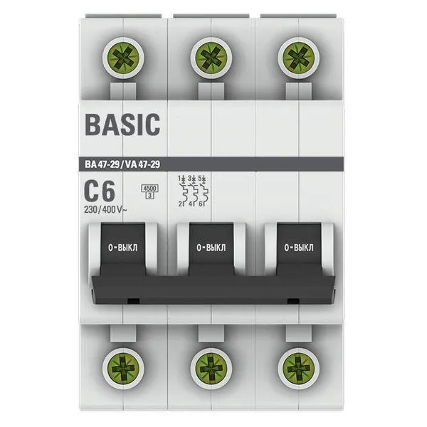 Отзывы о Выключатель автоматический трехполюсный 6а с ва47-29 4.5ка EKF MCB4729-3-06C )