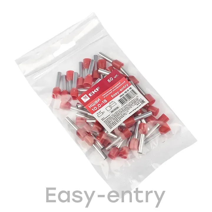 Одинарные и двойные втулочные наконечники (НШвИ и НШвИ2) EKF PROхima являются единственными специально разработанными наконечниками под опрессовку, которые полностью заменяют обязательный процесс облуживания многопроволочных медных проводов (типа ПВ-3, ПВС и т.п.) при монтаже различного электрооборудования. Втулочные наконечники состоят из медной луженой трубки, один конец которой развальцован для облегчения ввода многожильного провода и изолирующей манжеты из полипропилена.