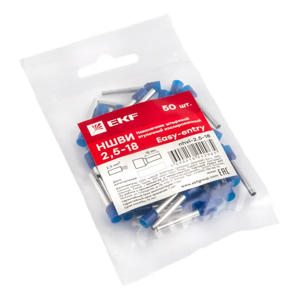 Наконечник штыревой втулочный ншви 2,5-18 (50шт.) EKF NHVI-2.5-18