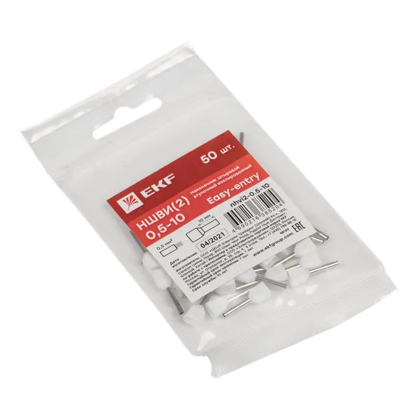 Одинарные и двойные втулочные наконечники (НШвИ и НШвИ2) EKF PROхima являются единственными специально разработанными наконечниками под опрессовку, которые полностью заменяют обязательный процесс облуживания многопроволочных медных проводов (типа ПВ-3, ПВС и т.п.) при монтаже различного электрооборудования. Втулочные наконечники состоят из медной луженой трубки, один конец которой развальцован для облегчения ввода многожильного провода и изолирующей манжеты из полипропилена.