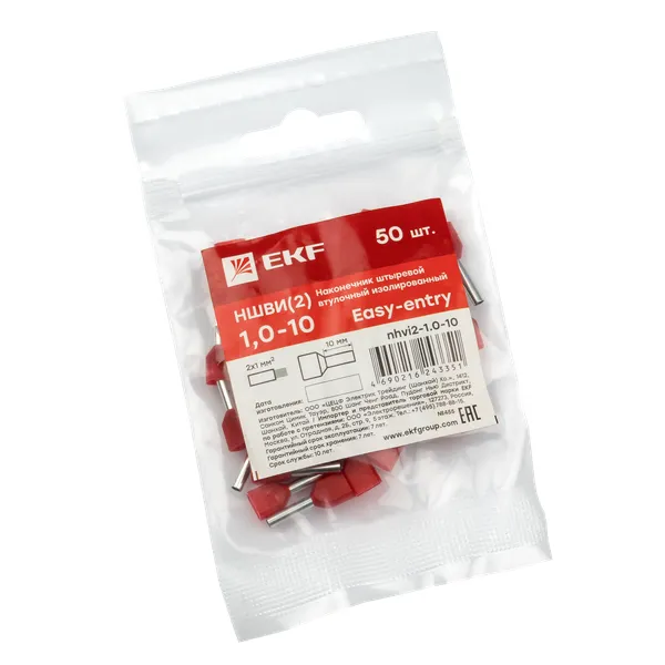 Отзывы о Наконечник штыревой втулочный ншви (2) 1,0-10 (50шт.) EKF NHVI2-1.0-10 )