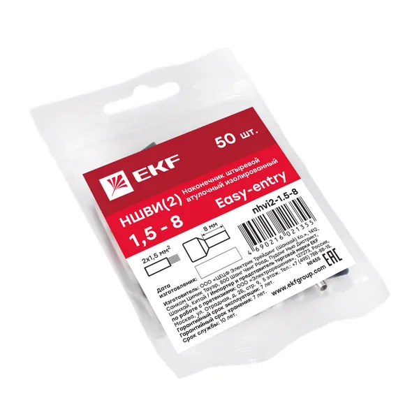 Отзывы о Наконечник штыревой втулочный изолированный ншви(2) 1.5-8 (50шт) EKF NHVI2-1.5-8 )