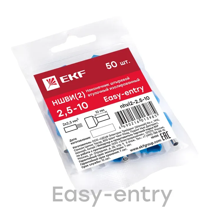 Отзывы о Наконечник штыревой втулочный изолированный ншви(2) 2.5-10 (50шт) EKF NHVI2-2.5-10 )