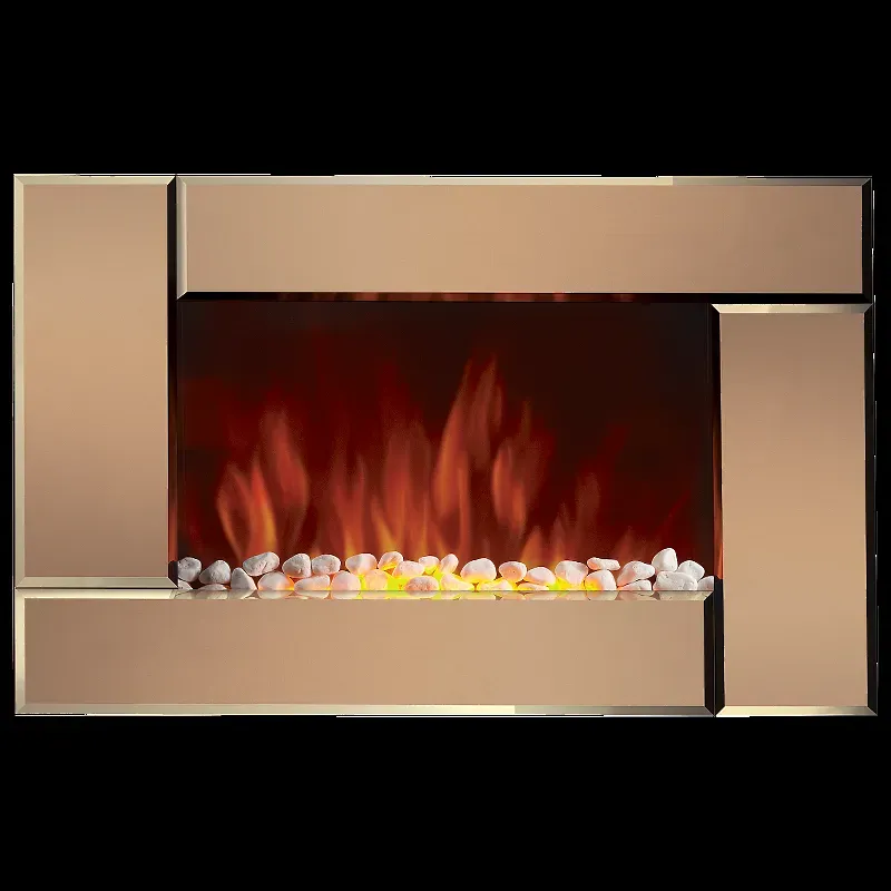 Камин с лицевой панелью из настоящего зеркала теплого бронзового оттенка станет восхитительным украшением любого интерьера. В комплекте с камином поставляются декоративные белые камни — современное решение в стиле hi-tech. Возможность использования камина в режиме «эффект пламени» без обогрева. Встроенный модуль Real Sound — аналоговый звук «потрескивания дров». Три режима работы: без обогрева / 1 кВт / 2 кВт. Регулировка яркости пламени, регулировка и отключение звука. Крепеж и пульт ДУ в комплекте. Рекомендуется устанавливать настенный электрический камин на высоте от 60 см до 100 см от пола.